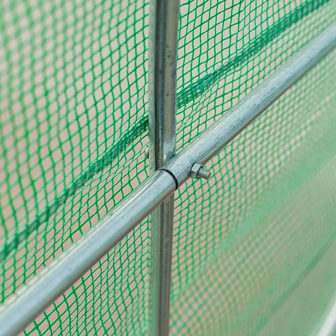 - PE Cover: Our two-layer 140 GSM PE cover features a reinforcement grid through the middle to prevent tearing. It protects plants from UV scorching while allowing 85% of nourishing sunlight to pass through uninterrupted. The 5.9 in extended edges are supposed to be deep buried in the soil to tighten the green house cover for more stability and against rainwater accumulation.