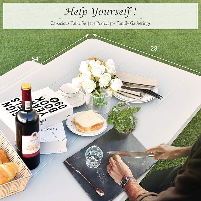 Giantex Picnic Table Bench Set Outdoor Camping All Weather Metal Base Wood-Like Texture Backyard Poolside Dining Party Garden Patio Lawn Deck Large Camping Picnic Tables for Adult (White)