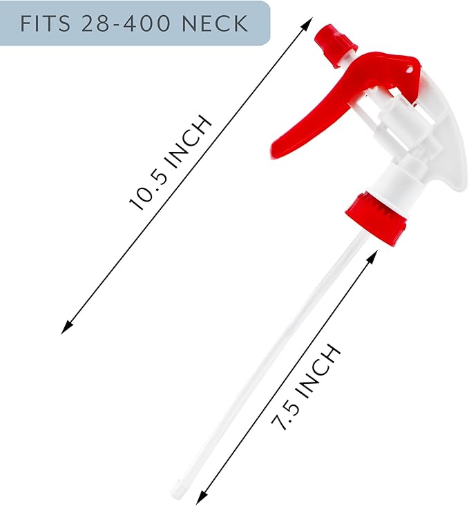 - SIZE: Fits 28-400 neck, 10 inch long dip tube [for 16 oz or 32 oz bottles], total length with sprayer head 12.5 inches; COLOR: Red & white with transparent dip tube