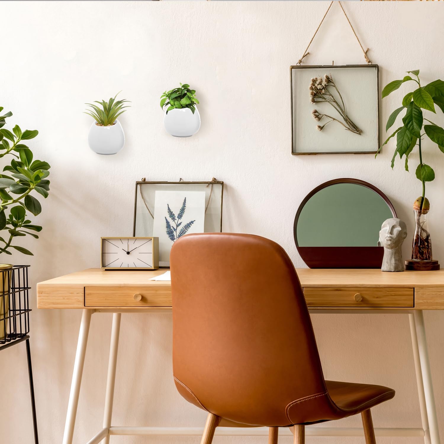 - Set of 2 white ceramic 6-inch round wall-hanging pots