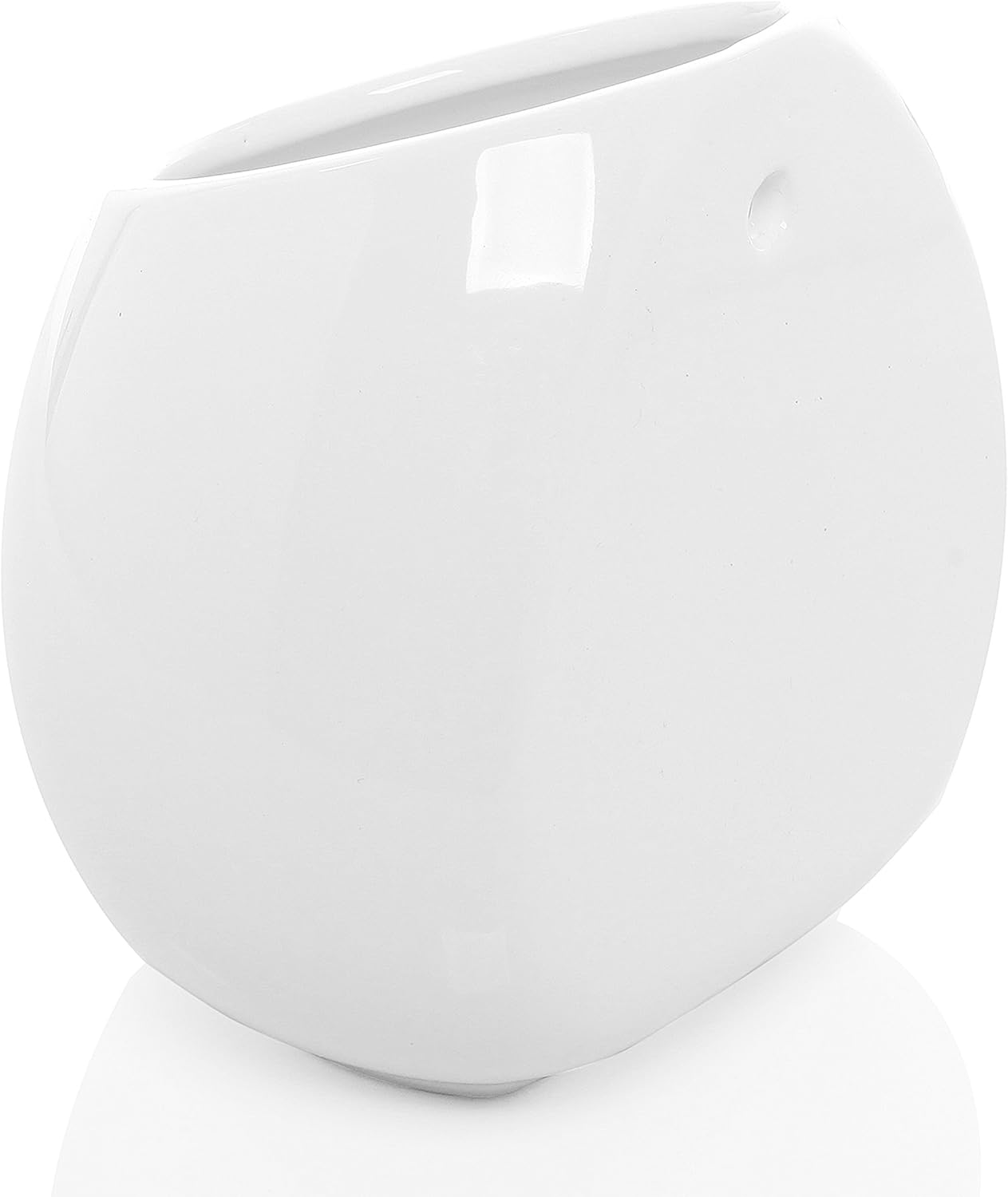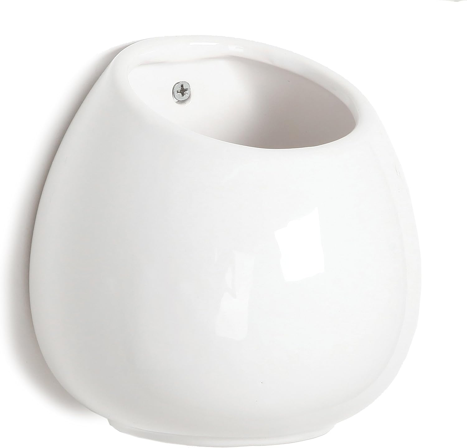 MyGift 6-inch White Ceramic Wall Planter Vase - Hanging or Desktop Succulent Plant String of Pearls Cactus Indoor Pots, Set of 2