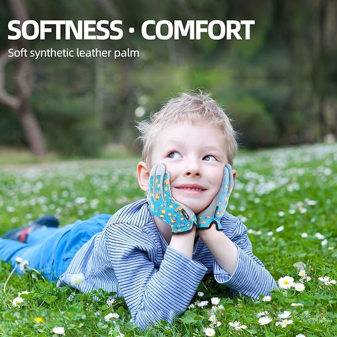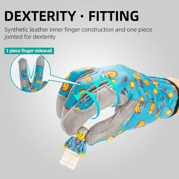 Vgo... 1-Pair Age 8-9 Kids Gardening Gloves,Children Yard Work Gloves,Soft Safety Outdoor Playing Gloves (Size XXL,Blue Plane, KID-MF7362)