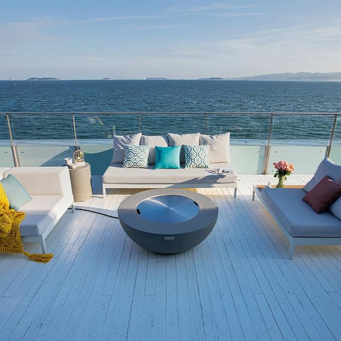 Elementi Lunar Fire Bowl Outdoor Gas Firepit Table 42 Inches Natural Gas Fire Pit Patio Heater Concrete High Floor Clearance Firepits Electronic Ignition Backyard Fireplace Cover Lava Rock Included