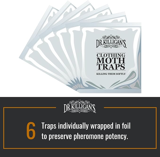 - Design Options — Dr. Killigan's moth traps boast an attractive appearance while being a safe (when used as directed) alternative to moth balls for closet. When buying a 6-pack of Premium Clothing Moth Traps, you have the choice between two distinct design options. Regardless of your selection, each trap features the same exclusive, highly effective pheromones and top-quality adhesive.