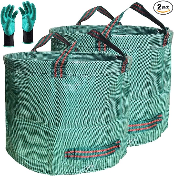 - >>> 2-Pack, 137 Gallon Lawn Garden Leaf Bags; Large size, Diameter 34", Height 34", Yard Waste Bags with Waterproof Gardening Gloves: It's made from rugged rip-resistant polypropylene fabric; Well-made,Reusable,Standable leaf bag w/ waterproof garden gloves; Garden bag has capacity of 137 gallon, you can fill it with more stuff; Yard Garden bags for Leaf bags,Weeds bag,Debris bag,Plant clippings bag,Yard waste bags,Laundry bag,Moving house bag,Camping waste bag,Garage storage bag,Recycling bags