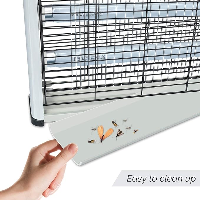 - EASY UPKEEP: The removable plastic tray at the bottom of the unit collects dead insects, and is washable to make maintenance fast and simple. The electric grid is self-cleaning.