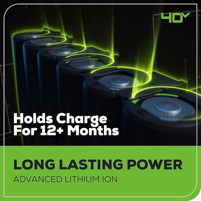 - Dual battery port design enables one battery to be stored while the other fuels the mower, saving you a trip to the garage