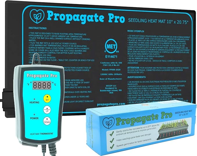 Seedling Heating Mat | Fits (1) Standard 1020 Tray | Germination Grow Heat Pad for Seed & Starter Plants Soil Warmer for Indoor Home Gardening (10x20 Single + Heating Thermostat)