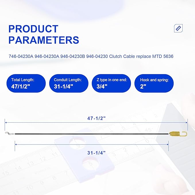Poagavgs 946-04230B 746-04230B Auger Clutch Drive Cable for MTD Craftsman Cub Cadet Troy Bilt Snow Blower Snow Thrower Replaces 746-04230 746-04230A 946-04230 946-04230A