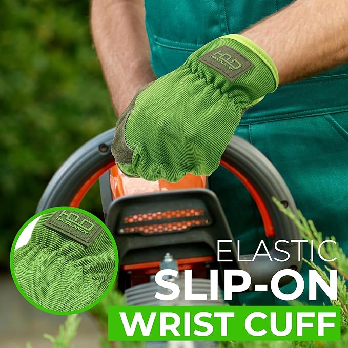 HANDLANDY Men Leather Gardening Gloves, Utility Work Gloves for Mechanics, Construction, Driver