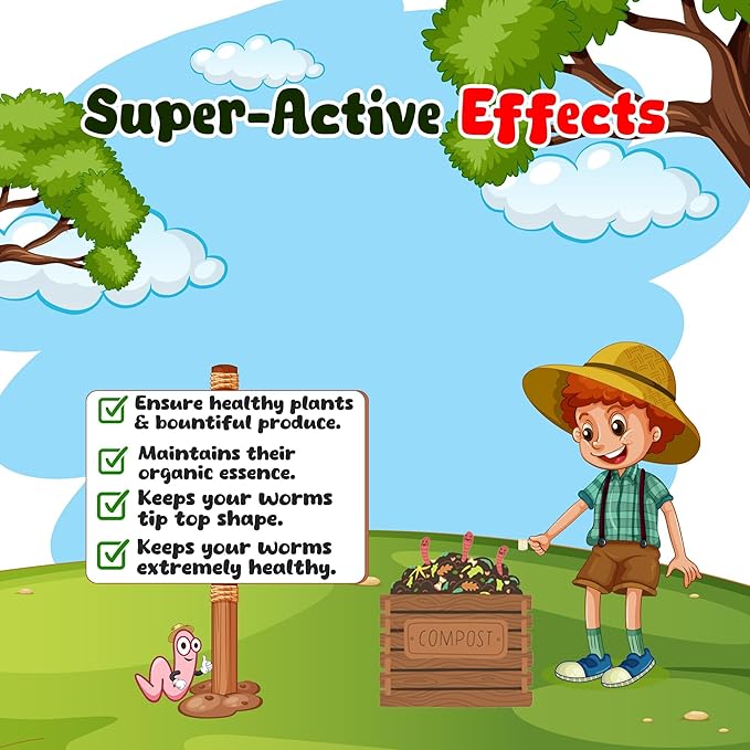 - BOOSTS COMPOSTING EFFICIENCY: Our worm food product provides essential nutrients for red wiggler composting worms and nightcrawlers, helping them thrive and break down organic matter effectively. It accelerates composting, yielding rich organic compost, or worm casting, faster, creating a healthier worm habitat for maximum productivity.