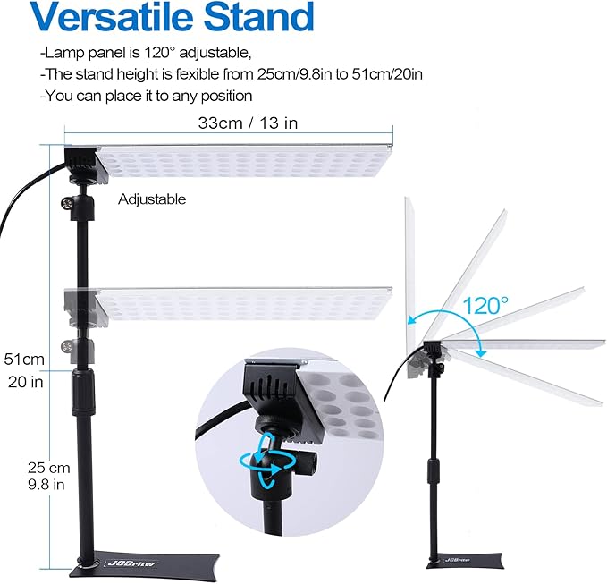 JCBritw LED Grow Lights with Stand 2ft White Full Spectrum with IR Hanging Mounting Standing Plant Light Table Desk Grow Lamp for Seed Starting, Seedlings, Veg, Flower (50.00, Watts)