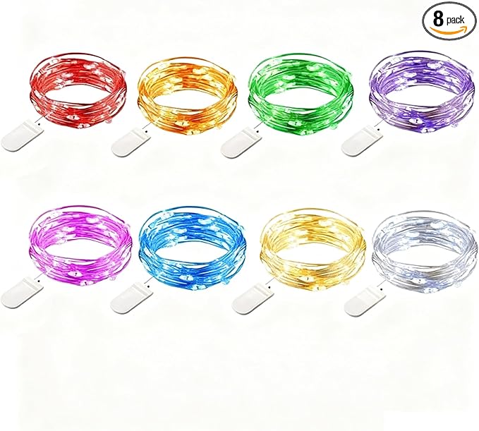 VOOKRY 8 Pack 30 LED Fairy Lights Battery Operated-10 ft Mini Copper Wire String Lights Firefly Starry Moon Lights for DIY Crafts Wedding Party Table Centerpieces Bedroom Costume Halloween(Multicolor)