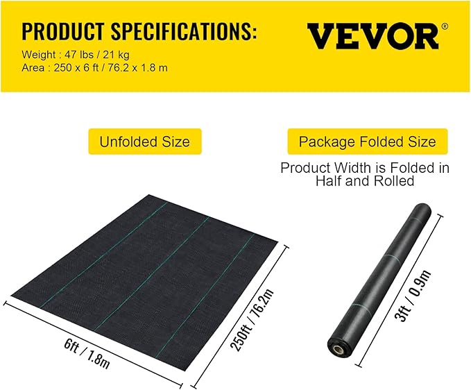 - Pro-environment & Durable Fabric: The landscape weed barrier fabric adopts professional grade polypropylene material, durable and high-strength. The landscape fabric can prevent the weed from growing and make your daily gardening effortless. Its size: 6 x 250 ft.