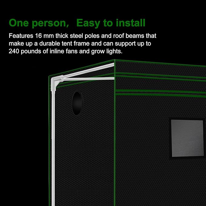 - 【Easy to operate】: Our indoor grow tents are equipped with a large heavy-duty zipper door for you to easily put in/take out plants , and the 4x8 grow tent design with large transparent observation windows allows you to easily observe the internal plant status of the grow tent at any time.
