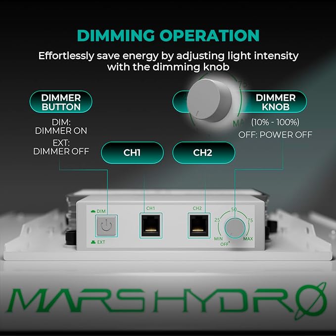 - Dimming & Daisy Chain Feature Grow Light: Upon an independent dimming button on the external driver,adjustable 0-100% settings adaptation and up to 30 LEDs Light daisy-chained in a group; Removable power supply with a 2-meter-long extension cord, suit for Large Rooms and Personal Setups
