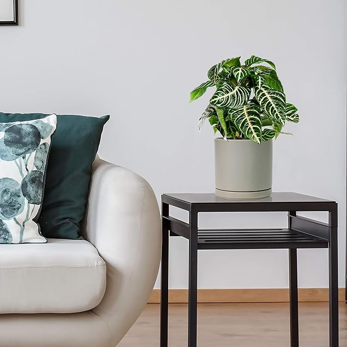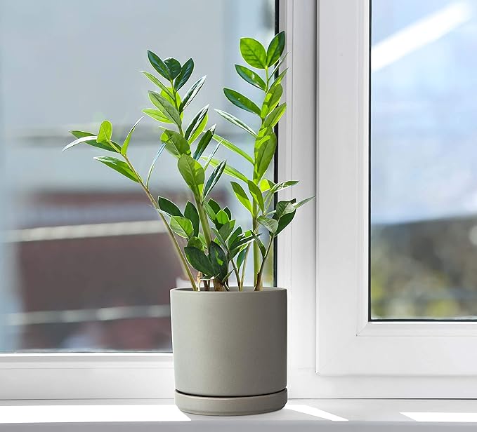 - Simple, elegant, and modern cylindrical straight round planter pot with saucer and drainage hole.