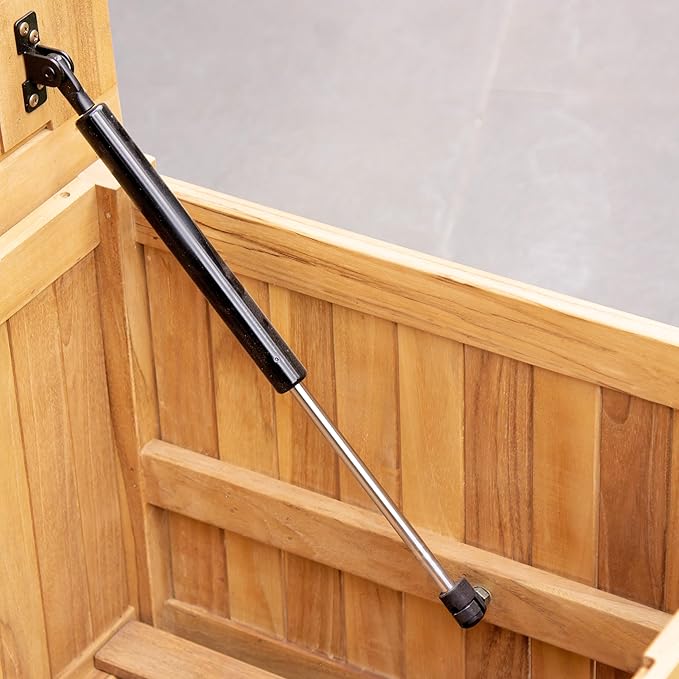 - Premium Teak Wood Durability: Crafted from solid Indonesian teak, this weather-resistant deck storage box delivers long-lasting performance in all seasons β perfect for patios, gardens, or balconies.