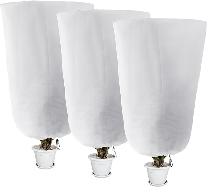Alpurple 3 Packs Winter Drawstring Plant Covers - 47" X 31.5" Warm Plant Protection Cover Bags, Frost Cloth Blanket Protecting Fruit Tree Potted Plants from Freezing Animals Eating