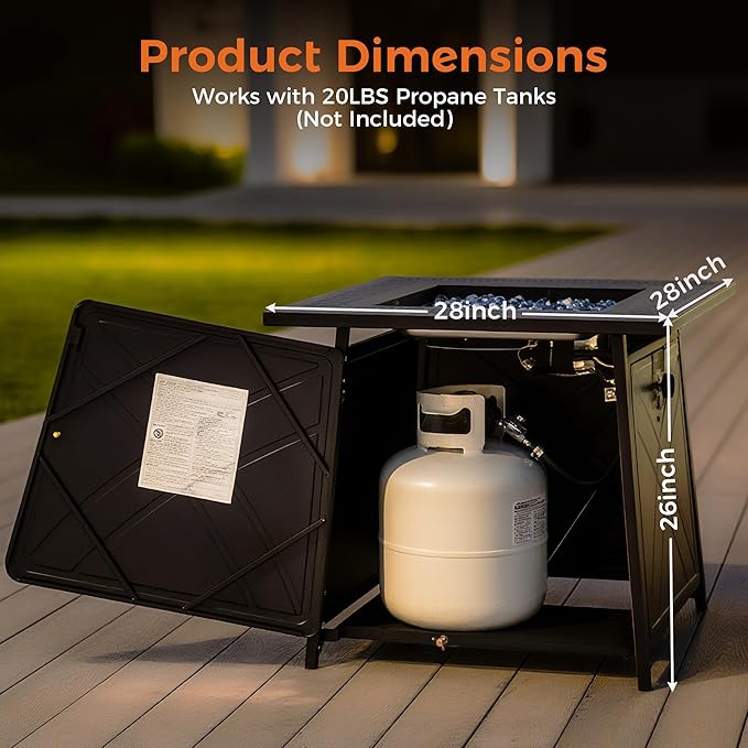 - PERFECT SIZE: 28 L x 28 W inch square gas fire pit tabletop, 26 inch in height, net weight 50 lbs, it will not let you feel too bulky and large