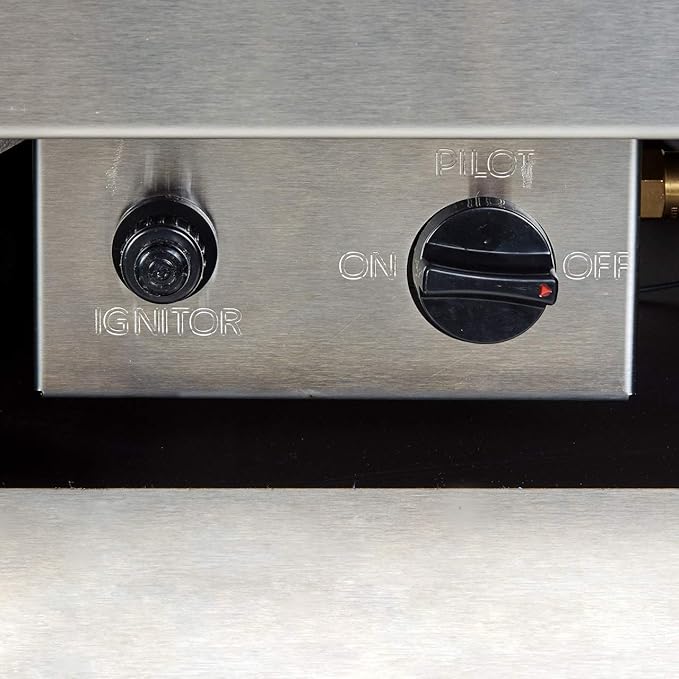 - DEPENDABLE β Manual on/off control valve. Easy start ignition with a battery assisted Piezo igniter. A drain tray is included to help direct any water or moisture that collects beneath the firebox!