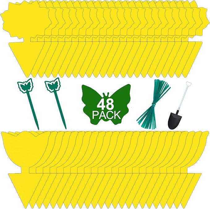 - Value package: 48 fungus gnat sticky traps, and our fruit fly traps for indoors and fungus gnat killer indoor and outdoor have many cute shapes to choose. And gnat sticky traps for plants contains 48 pack sticky plant trap, 2 green butterfly support sticks, 20 tie wire and 1 small shovel. You will like our fruit fly traps for indoor plants
