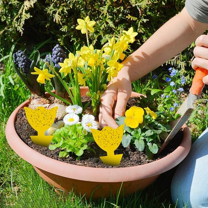 - Long lasting flying insect trap: our yellow sticky traps for plant gnats with a very strong adhesive, fruit fly traps for indoors are uv resistant and waterproof. No need to replace sticky traps for gnats until fully covered with bugs