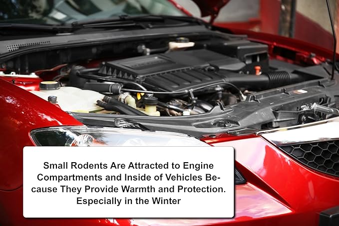 - IMMEDIATELY ELIMINATES ANIMAL & RODENT INFESTATIONS - Rodents Are Attracted To Engine Compartments And Inside Of Vehicles Because They Provide Warmth And Protection. Especially In The Winter. They Make Nests In Your Engine Compartments, Insulation And Headliners. Furthermore, They Leave Droppings Everywhere They Go. Stop Animals From Making You Vehicle Their Home.