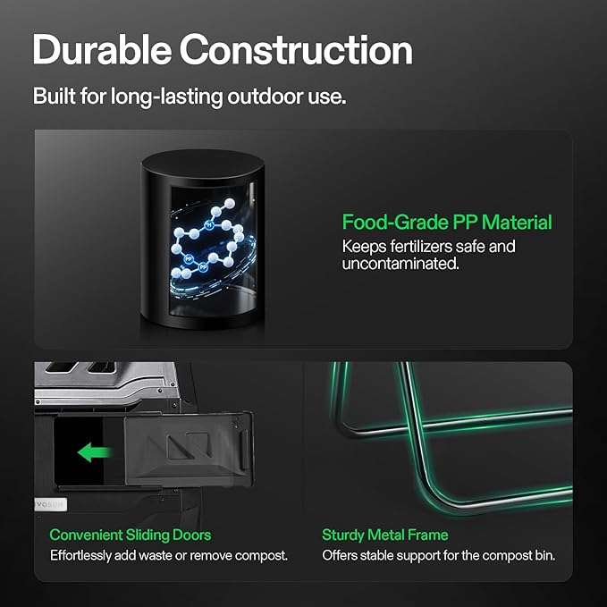 - Sturdy & Durable Construction: Constructed of premium metal frame and high-quality pp plastic body, this tumbling composter is corrosion-resistant, weathering-resistant, sturdy, and durable for long-lasting service life