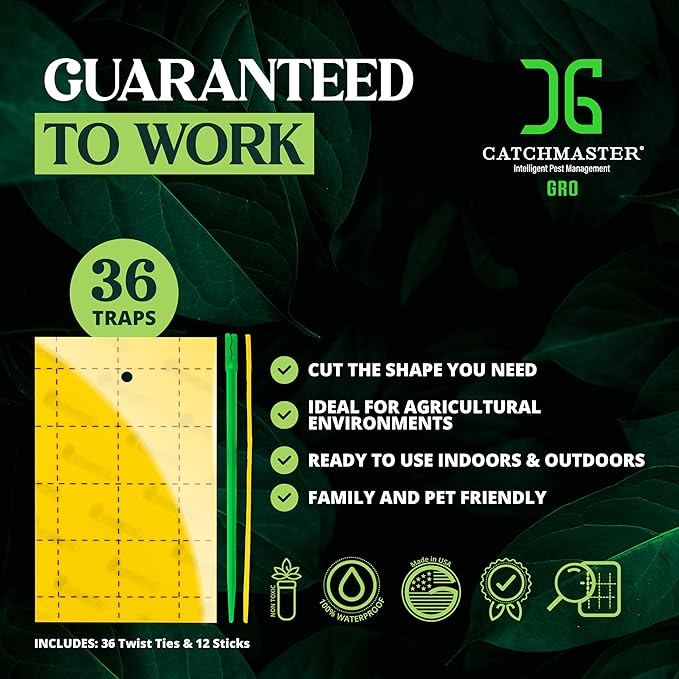 Catchmaster GRO Yellow Regular Double Sided Sticky Traps 36PK, Adhesive Bug & Fruit Fly Trap, Pest Control for Home, Farm, Garden, Hydroponics & Greenhouse, Protect Live Plants Indoor & Outdoor