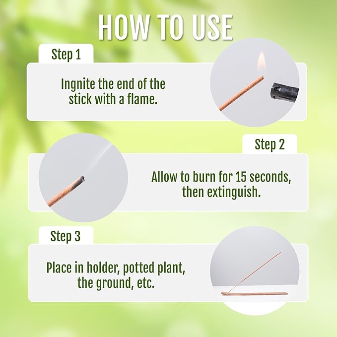 - 🌿 100 ALL-NATURAL OUTDOOR STICKS Each stick burns up to 45 minutes, providing long-lasting, clean-burning outdoor protection with no synthetic additives.