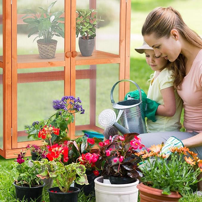 MCombo Wooden Cold Frame Greenhouse, Raised Flower Planter Shelf Protection for Outdoor Indoor Use, 0760 (Orange)