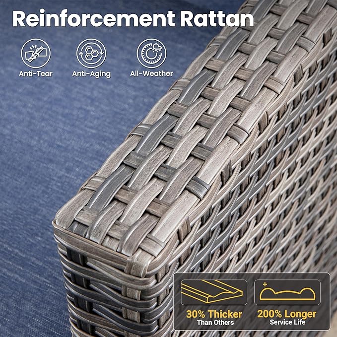 - Premium Wicker Rattan: Our modern outdoor sofa set is designed with a classic natural rattan look, all-weather sofa made of sturdy rust-resistant steel construction, providing strong support and balance for the patio seats