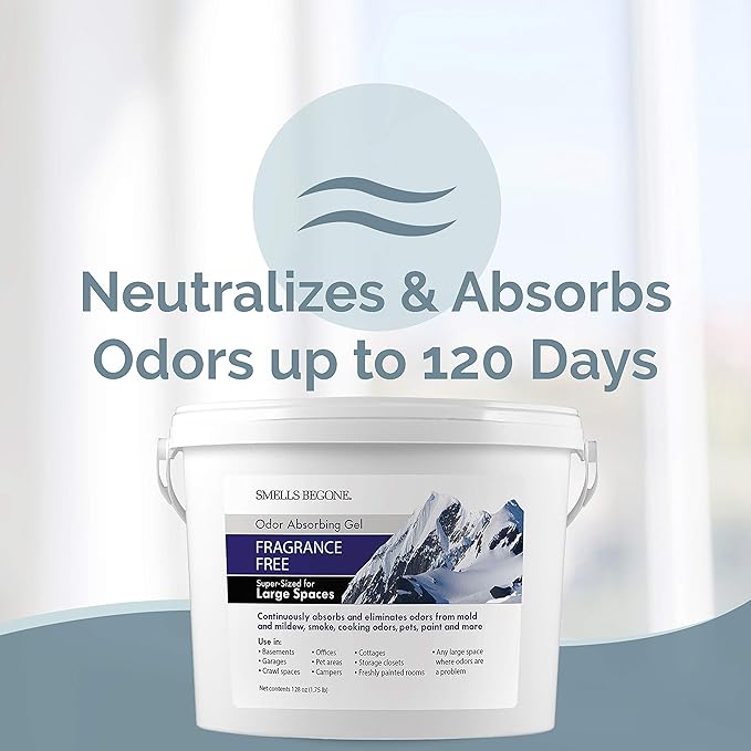 SMELLS BEGONE 1-Gallon Odor Absorber Gel - Air Freshener & Odor Eliminator for Homes, Garages & Commercial Buildings - Industrial Size - Fragrance Free