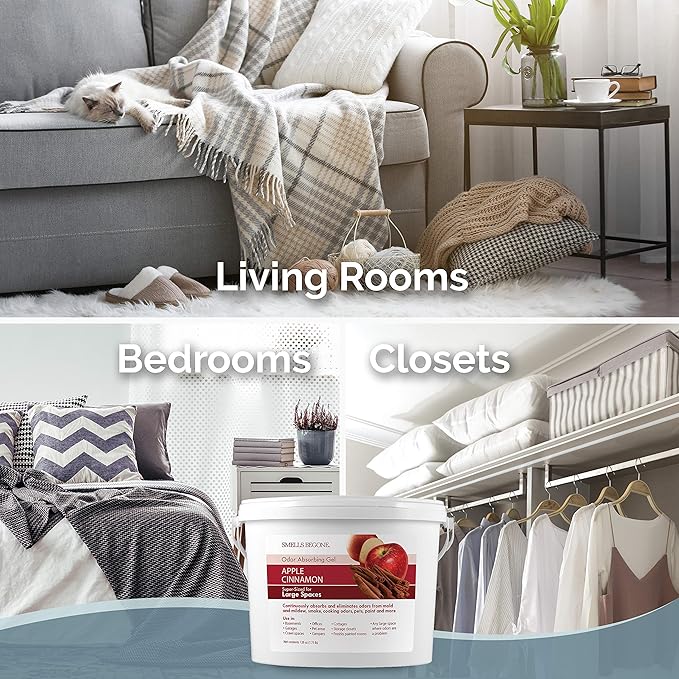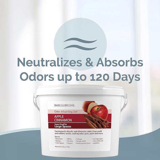 SMELLS BEGONE 1-Gallon Odor Absorber Gel - Air Freshener & Odor Eliminator for Homes, Garages & Commercial Buildings - Industrial Size - Apple Cinnamon Scent