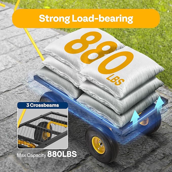 - POWERFUL LOAD AND LARGE CAPACITY - VIVOHOME's multi-functional garden cart has meticulous workmanship and strong design sense; Its maximum load can reach 880 lbs., which is more than twice that of competitors; there's nothing you cannot pull away with this practical and convenient cart (to prolong its life, long-term heavy loading is not recommended)