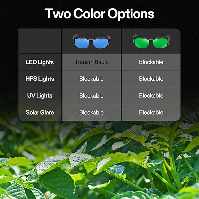 - Useful: Blocks UVA & UVB rays, alleviates glare, and reduces eye strain while working under grow lights