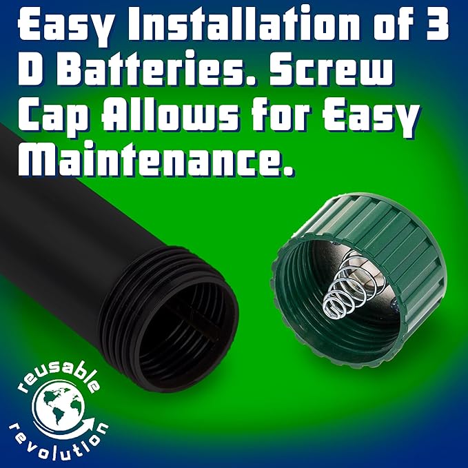 - BATTERY OPERATED - Each Reusable Revolution Mole Chaser requires 3 D batteries to operate. The easy twist open top makes changing out old batteries a breeze.