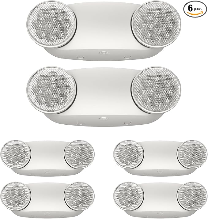 6 Packs White LED Emergency Lights with Battery Backup, Two Head Adjustable Emergency Lighting Fixtures-Fireproof Materials-Emergency Lighting Fixture/Emergency Light Home