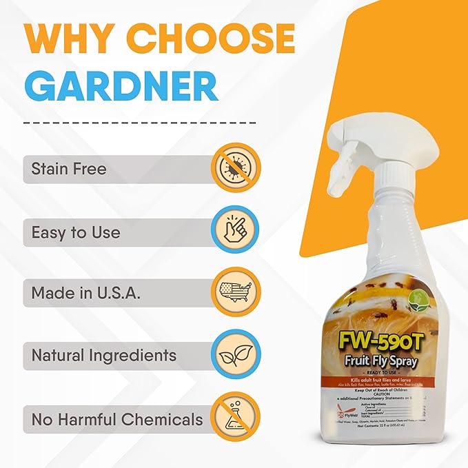 Gardner - Fruit Fly Spray for Gnats, Bugs, Fleas, Ticks, Mites, Wasps - Pet Friendly All Natural Bug Spray for Home - Gnat Killer for Indoor Plants - Stain Free Flying Insect Spray