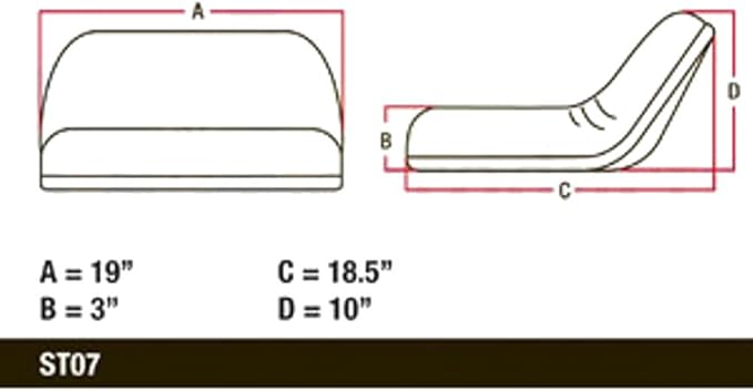 - DIMENSIONS: (A) 19.00", (B) 3.00", (C) 18.50", (D) 10.00"
