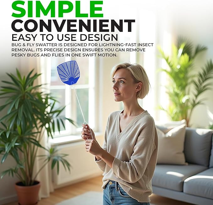 - Versatile: Whether you're dealing with flies, mosquitoes, gnats, or other flying nuisances, this swatter is up for the task. Keep your home, patio, or picnic area bug-free with ease.