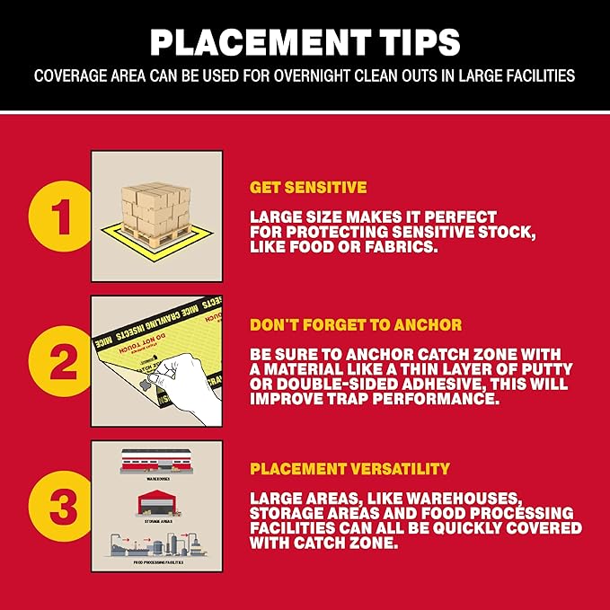 - TOTAL COVERAGE: The pest and insect trap can be used in residential, commercial, or industrial buildings, indoors and outdoors, and sensitive areas where rodenticides or snap traps are undesirable or prohibited. The insect and mouse glue trap can be used for both cleanouts and hot spots. Tape off large boundary areas to manage hot spots in your warehouse or storage facility, or isolate incoming pallets to prevent infestations.