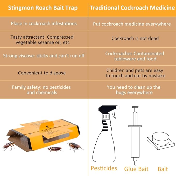 - Convenient and Effective: Roach motel is easy to operate and can be put into use immediately after being folded as instructed. Multiple entrance is convenient for cockroaches to enter to improve the capture rate.