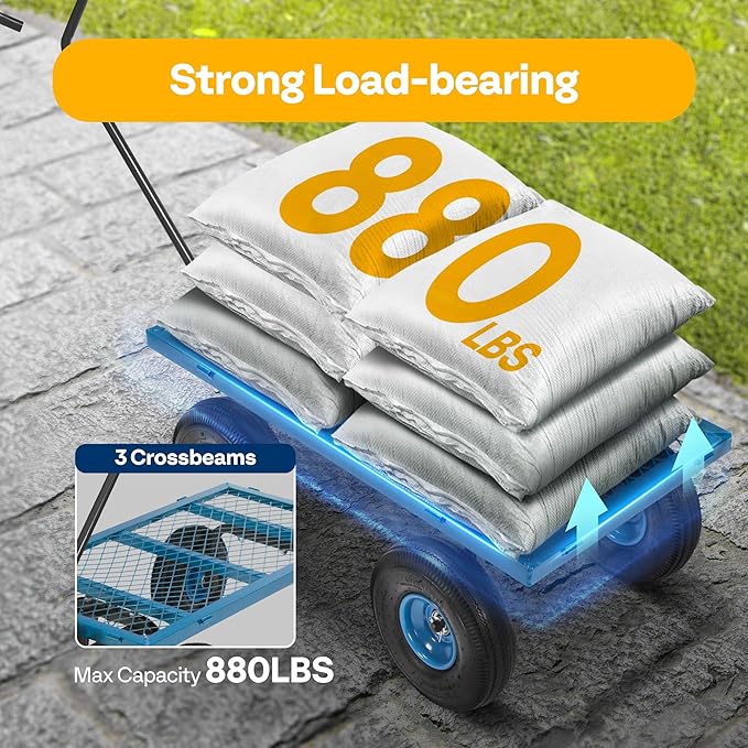 - POWERFUL LOAD AND LARGE CAPACITY - VIVOHOME's multi-functional garden cart has meticulous workmanship and strong design sense; Its maximum load can reach 880 lbs., which is more than twice that of competitors; there's nothing you cannot pull away with this practical and convenient cart (to prolong its life, long-term heavy loading is not recommended)