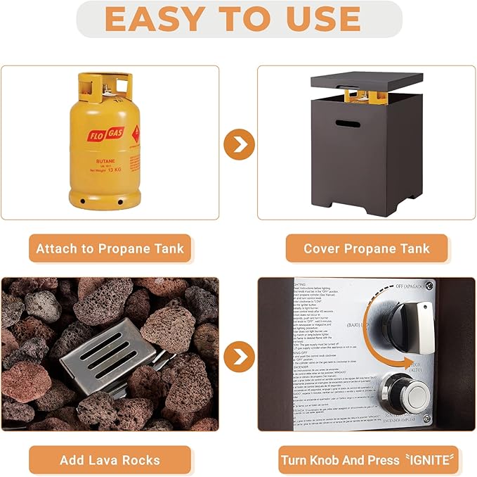 - With A Storage Tank: The stove table also comes with a storage tank. The propane tank can be hidden perfectly without compromising the aesthetics of your space.Whether propane fire table or tank holder both can be use side table to conveniently hold your brandy snifters, food, and décor.