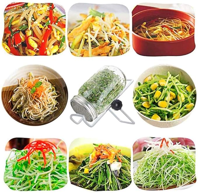 - Grow Seeds And Beans - Broccoli, alfalfa, wheatgrass, mung beans, and many other greens and sprouts are possible to grow with our organic sprouting kit. Package includes: 1 sprouter mason jar, 1 sprouting lid and 1 stand.(Seeds are NOT included)