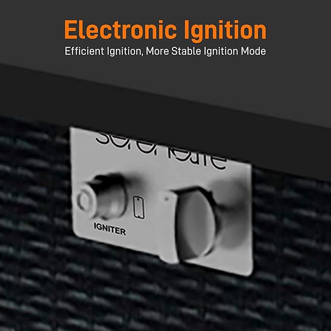 - EASY TO ASSEMBLE: Easy to assemble with two persons & takes only 20-30 minutes to put together. Has a stainless steel control panel & burner w/ assembled gas hose regulator & comes w/ 6.6 lbs. decorative lave rock set