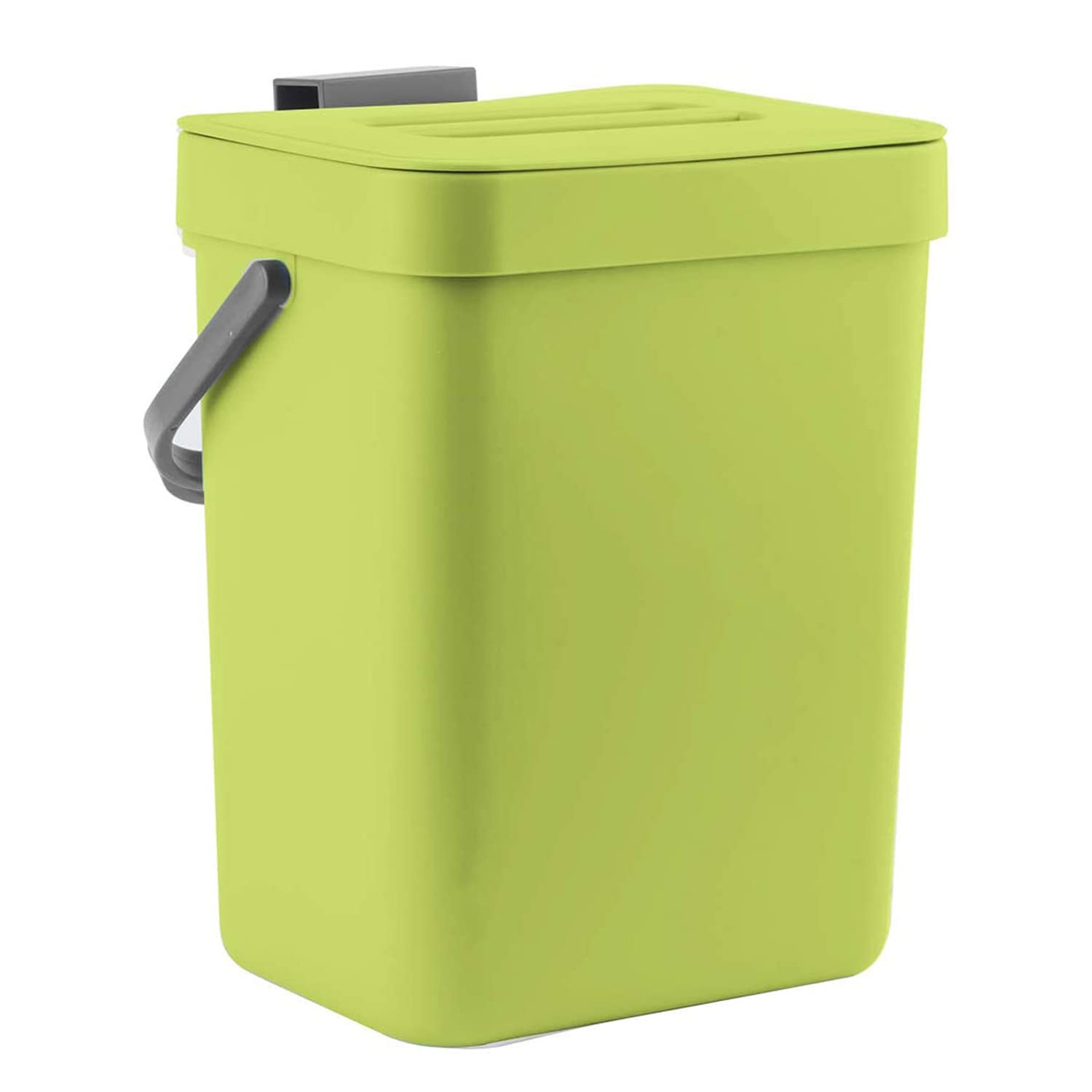 LALASTAR Food Waste Basket Bin for Kitchen, Small Countertop Compost Bin with Lid, Odor-Free Food Scrap Container, Wall Mounted Garbage Can, 3L/0.8 Gal, Green