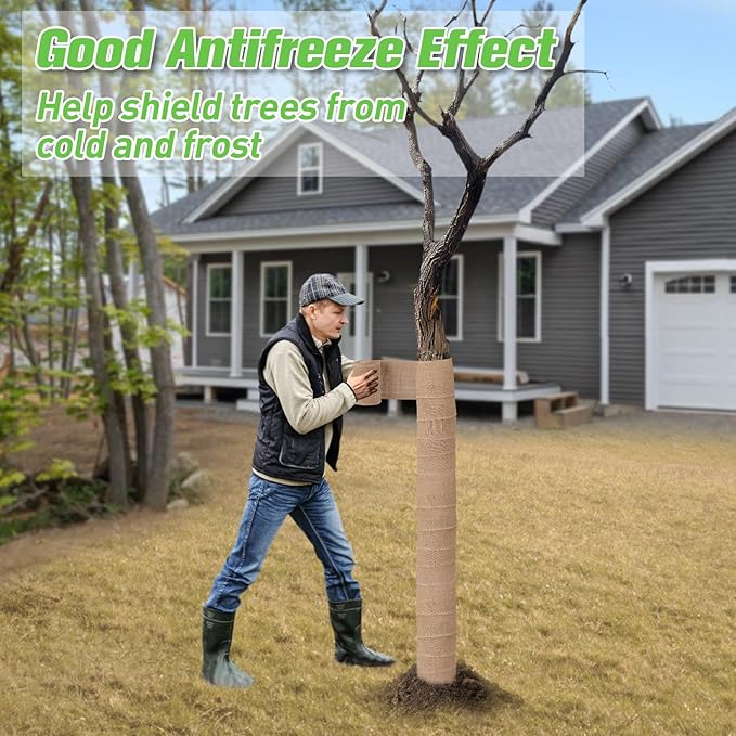 - Perfect Size: You will get 2 rolls of natural jute burlap tree protector wraps, each roll is about 118 inches long and 7.8 inches wide. Long enough to protect your trees from cold, and wide enough to provide great convenience for you to wrap trees. Besides, you can cut it for multi-tree protection.